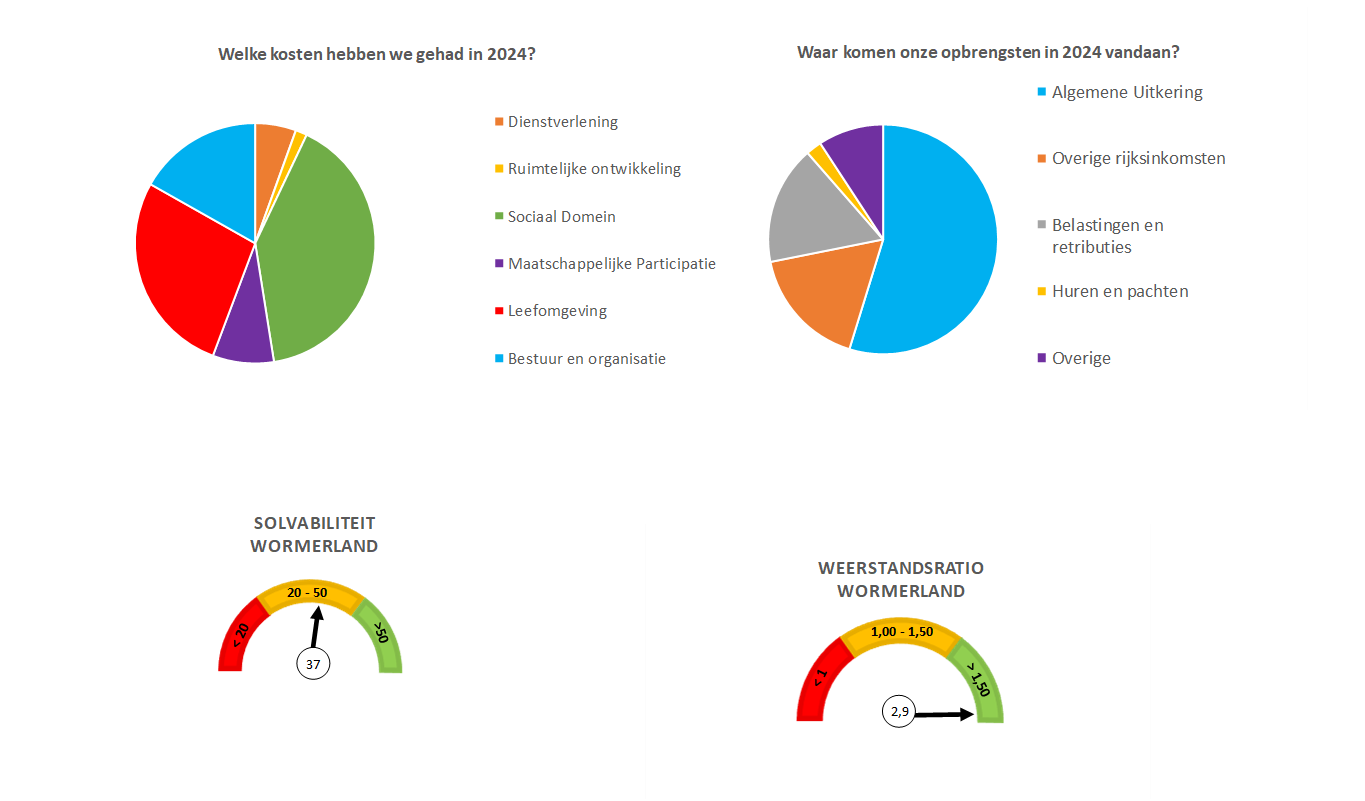 Solvabiliteit of solvabiliteitsratio is de verhouding van je eigen vermogen ten opzichte van het totale vermogen. Deze verhouding geeft aan of je onderneming schulden op lange termijn kan voldoen. De provincie gebruikt dit kengetallen als toezichthouder bij de beoordeling van onze financiële positie. De provincie hanteert daarbij de signaleringswaarden "Minst risicovol" (>50%), "Neutraal" (20%-50%) en "Meest risicovol"(<20%). Wormerland scoort dus in de categorie "Neutraal".